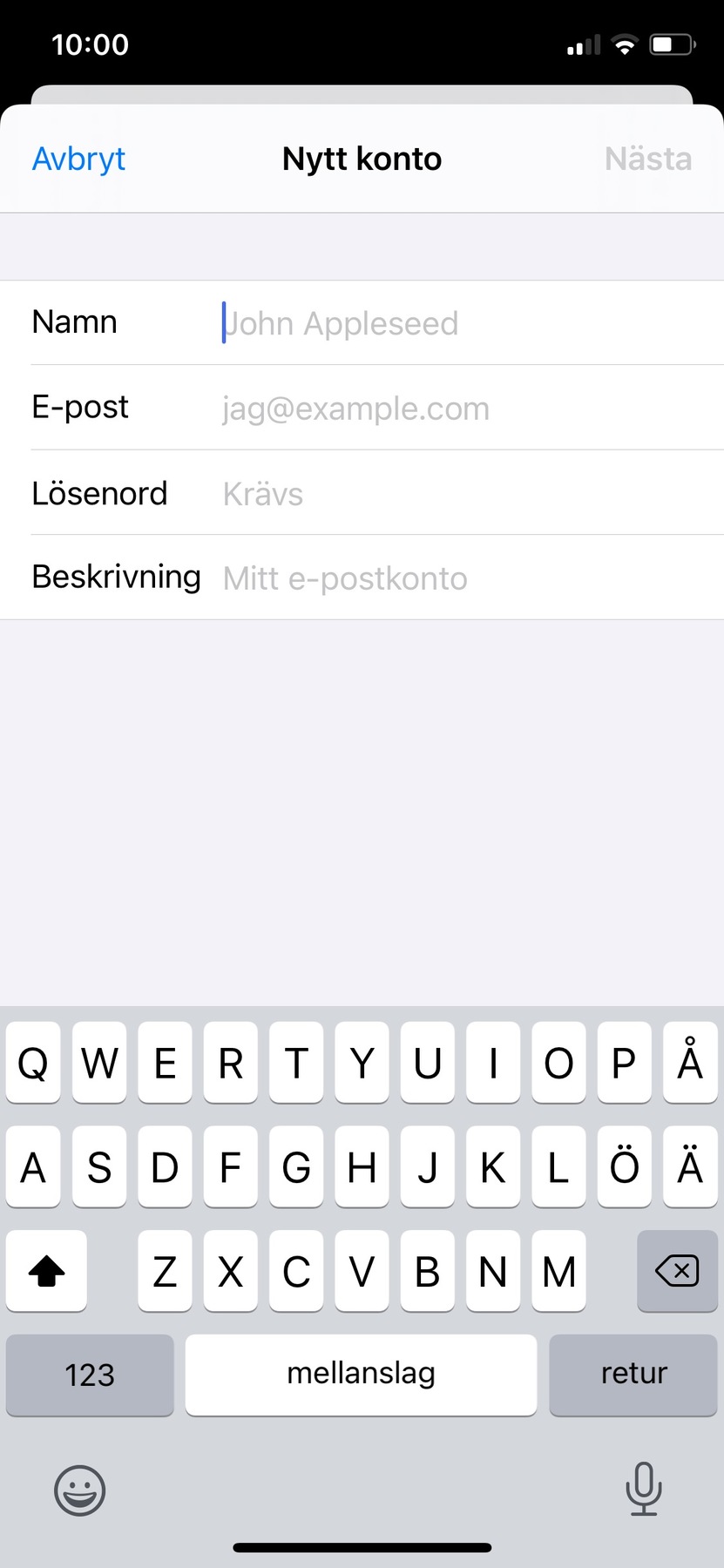 Fyll E-post och lösenord du fått från oss. Namn och beskrivning frivilligt.